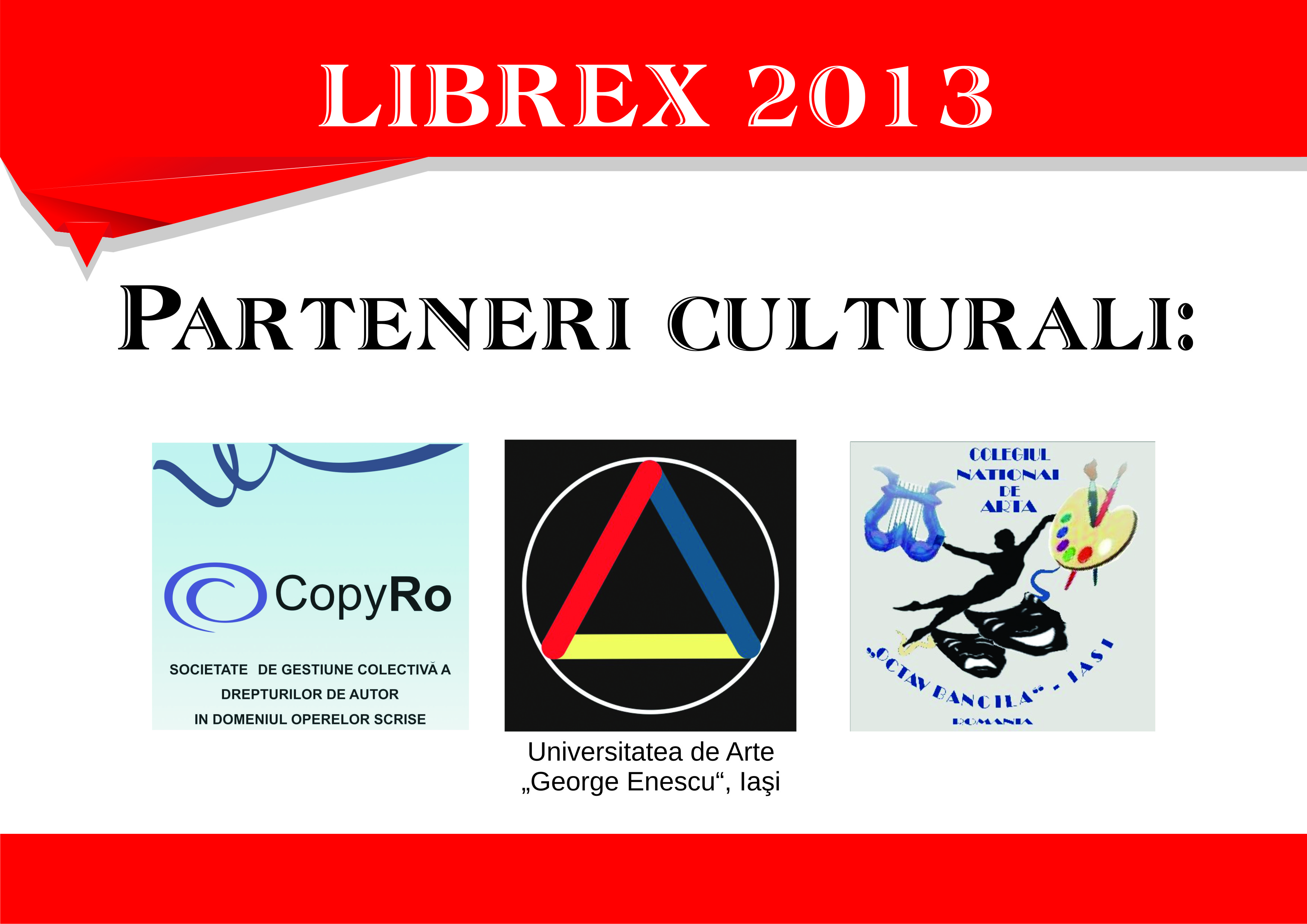 In realizarea programului cultural-artistic desfasurat pe fundalul Targului International de Carte Librex (lansari carti, prezentari de programe sau actiuni editoriale, prezentari de autor, dezbateri de specialitate etc.) sunt implicate institutii culturale diverse: institutii culturale locale: Muzeul Literaturii Romane Iasi - organizarea Colocviilor Nationale de Literatura, Uniunea Scriitorilor din Romania - filiala Iasi, Teatrul National "Vasile Alecsandri" Iasi, Teatrul pentru Copii si Tineret "Luceafarul", Complexul Muzeal "Moldova" Iasi, Centrul Cultural Francez iesean, British Council, Centrul Cultural German, Casa de Cultura a Studentilor din Iasi, Filarmonica ieseana, editori, difuzori, autori, traducatori, redactori, mass-media si alti actori ai vietii culturale locale si nationale.